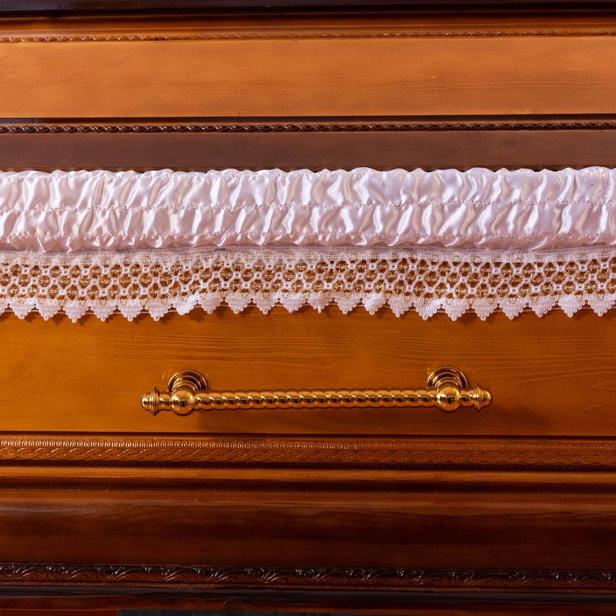 Cu dimensiuni ample și un finisaj pin antichizat cald, acest sicriu din molid este complet echipat, oferind un aspect nobil și liniștitor în clipele grele ale despărțirii.